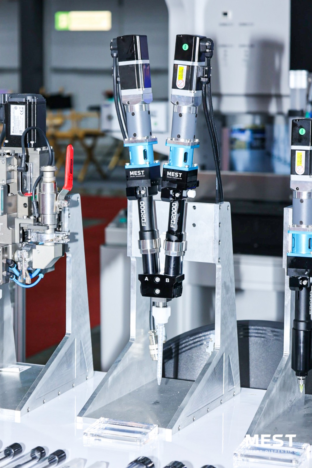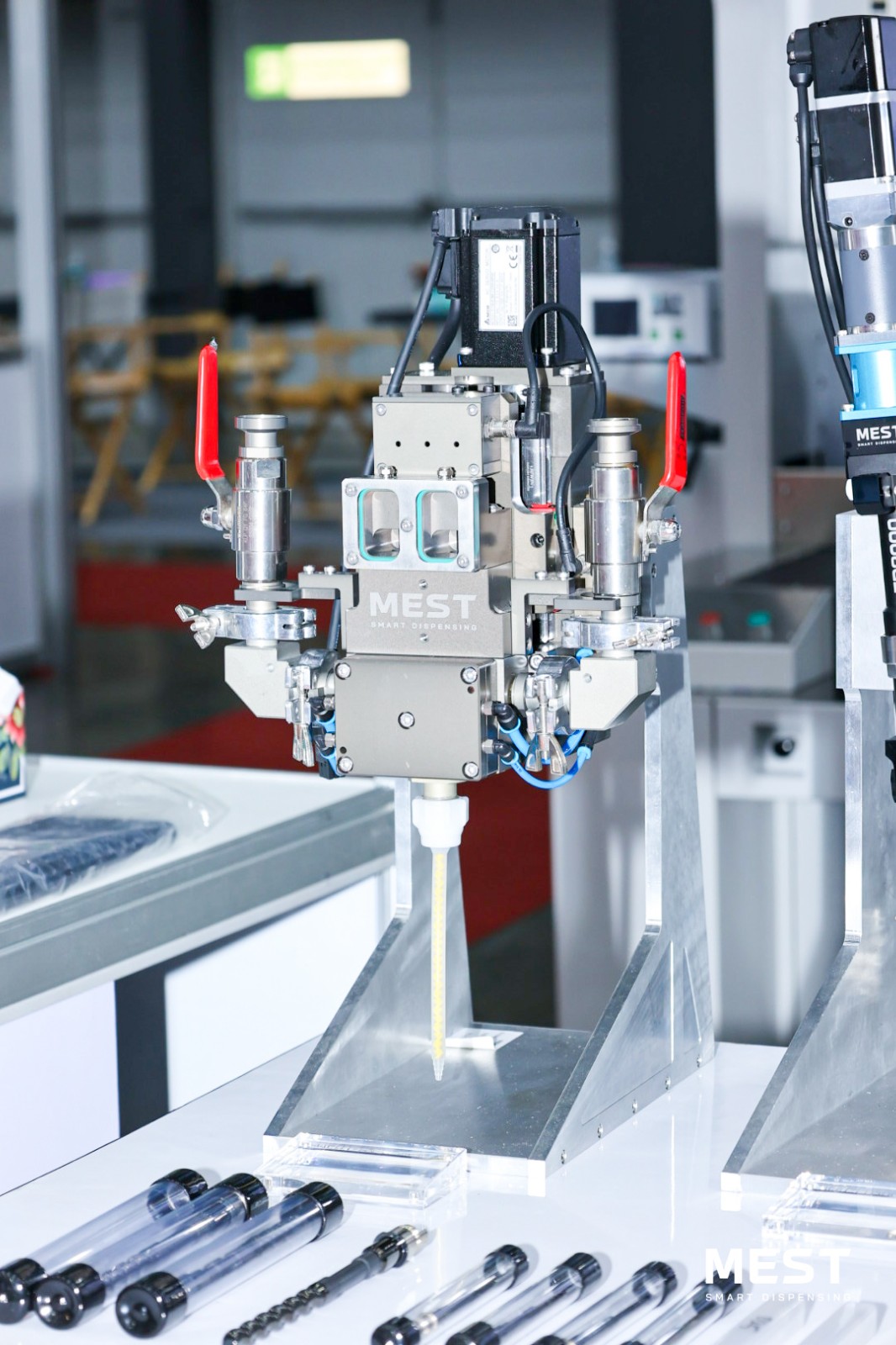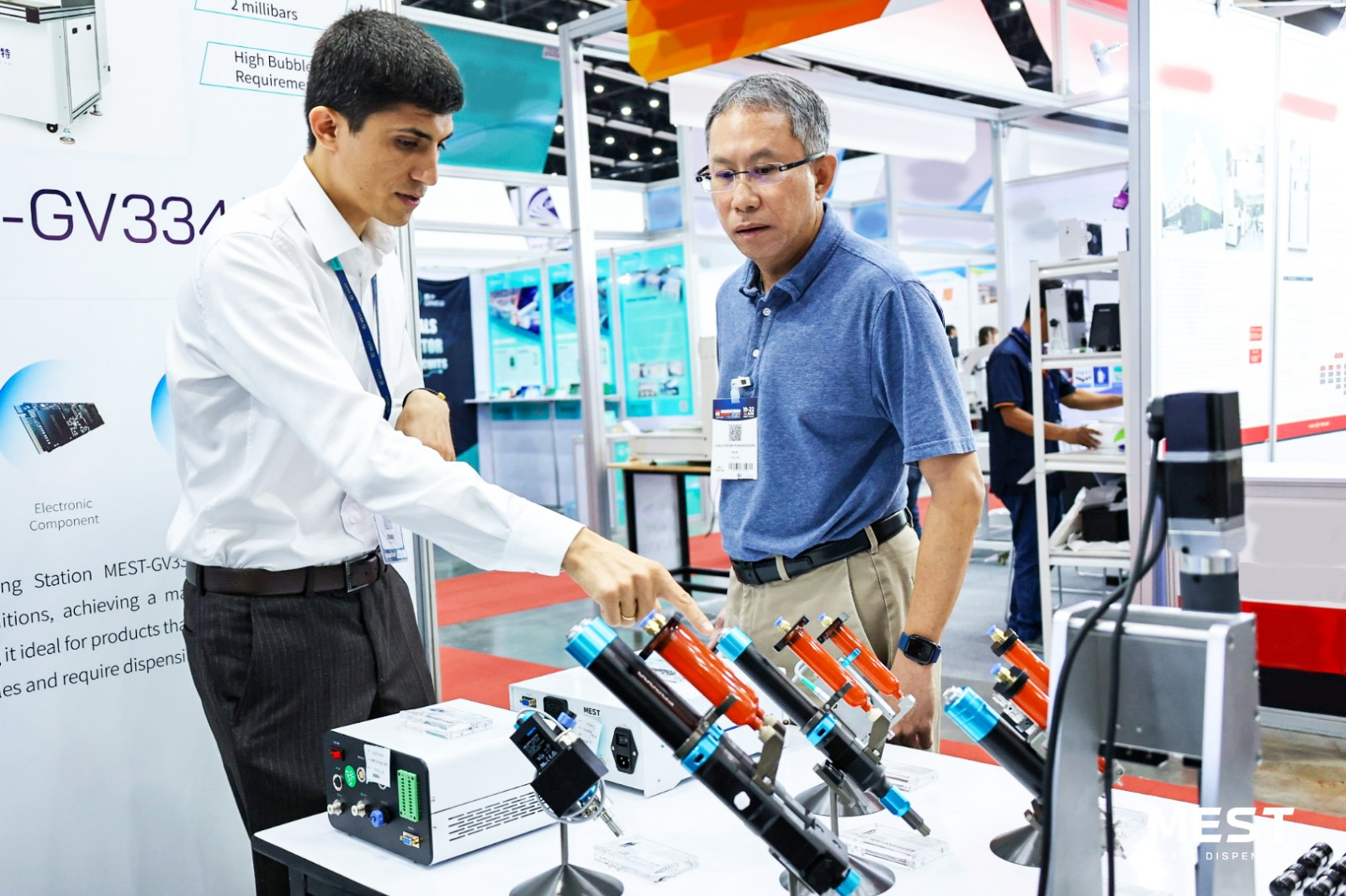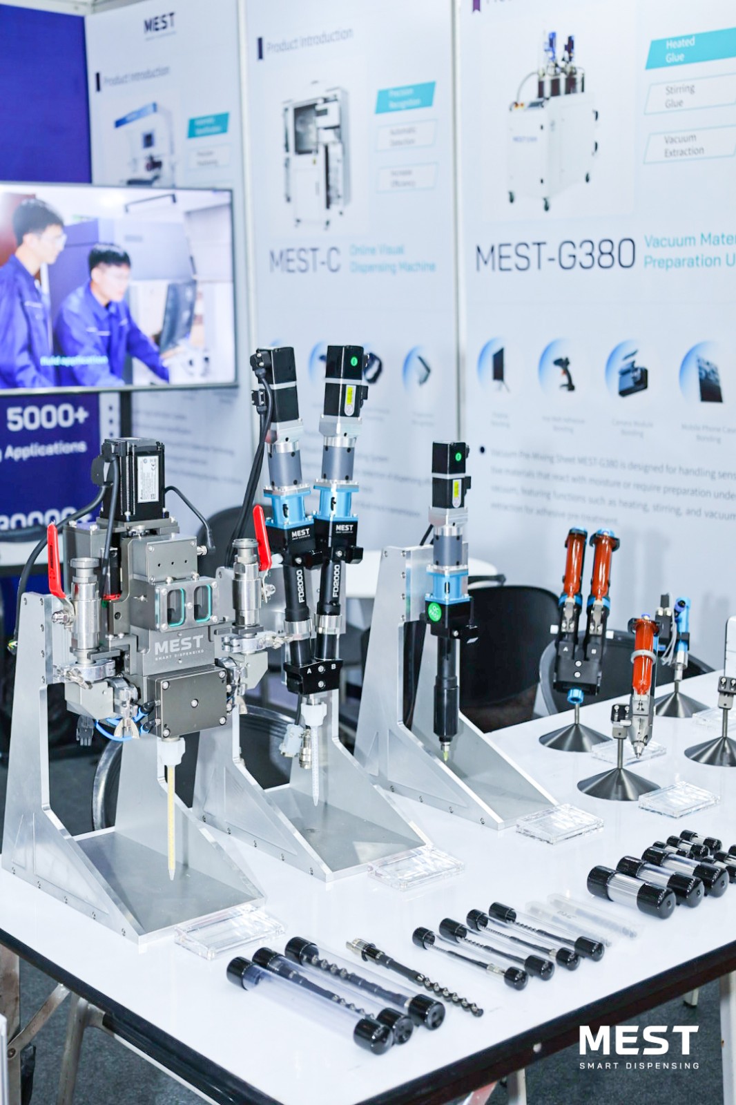 展會現(xiàn)場,邁伺特專業(yè)團(tuán)隊(duì)亮相,直觀展示了MEST點(diǎn)膠技術(shù)的應(yīng)用場景、工作流程及優(yōu)勢特點(diǎn),針對行業(yè)點(diǎn)膠難點(diǎn)提出