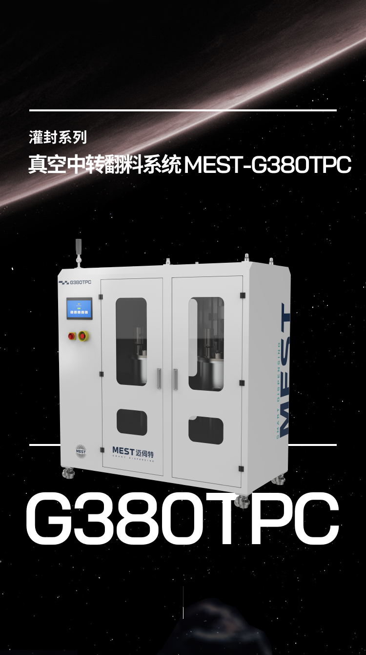 真空中轉(zhuǎn)翻料系統(tǒng)MEST-G380TPC用于處理會與水分發(fā)生反應(yīng)或需要在真空中準(zhǔn)備的高粘度50000-100000敏感材料,具備 加熱、攪拌、抽真空等膠水預(yù)處理功能,常與壓盤泵搭配使用。