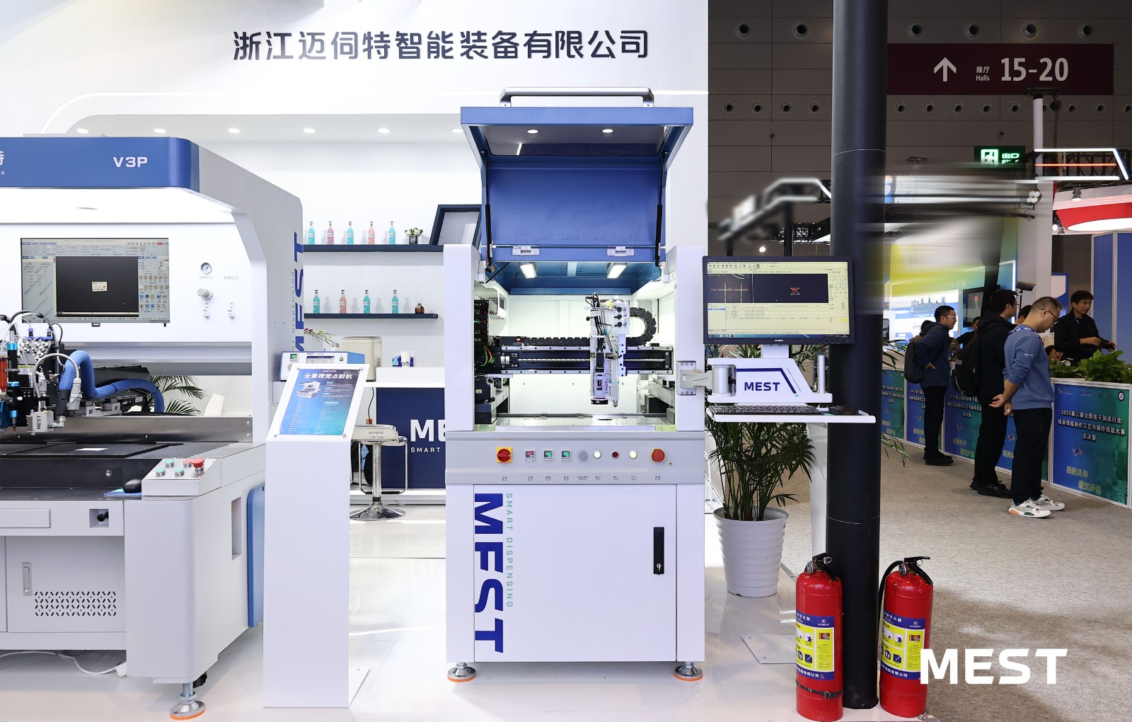 本次展會,MEST邁伺特重點展示了微電子點膠方案、整線點膠系統(tǒng)、點膠散熱方案。全景視覺點膠機MEST-V系列、在線視覺點膠機MEST-C系列以高精度、高效率和高穩(wěn)定性的表現(xiàn),吸引了眾多客戶駐足了解: